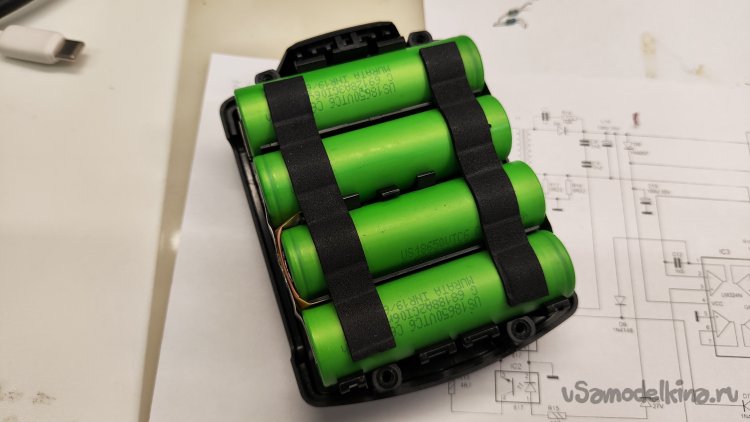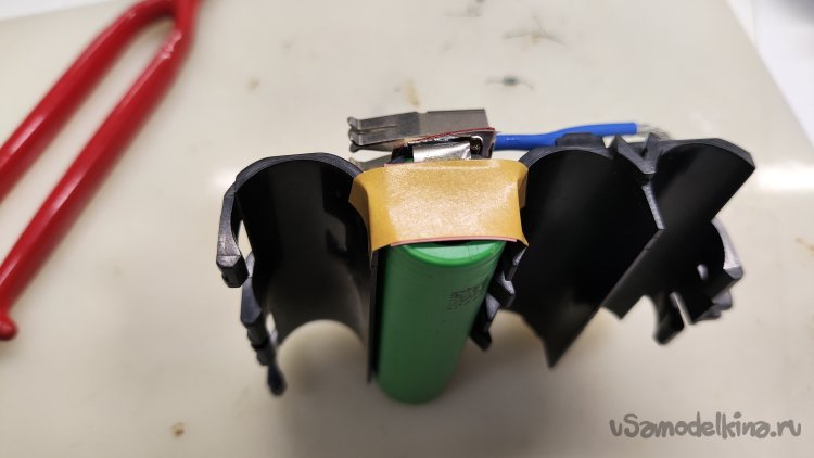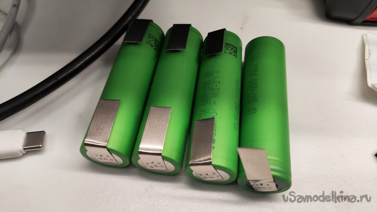 Устанавливаю четвертый аккумулятор, припаиваю минусовой вывод платы к аккумулятору.