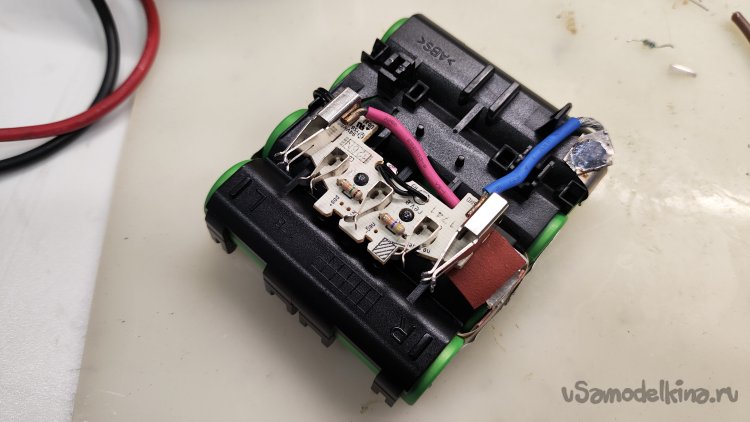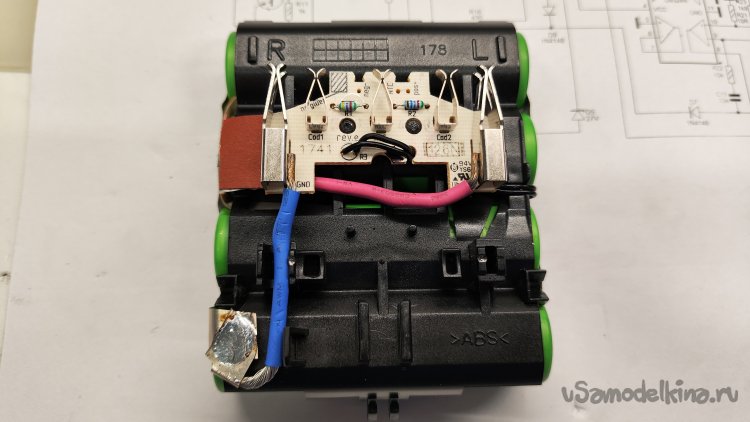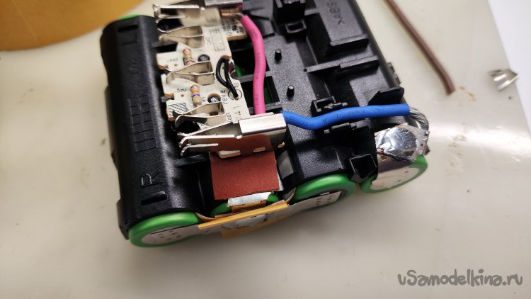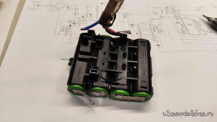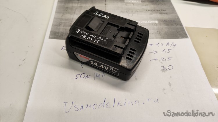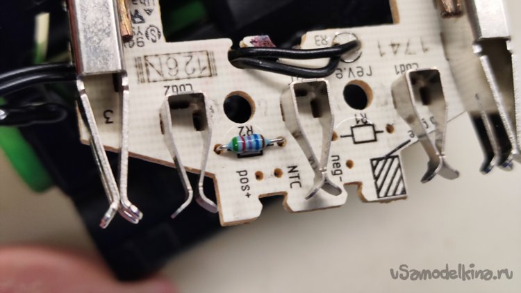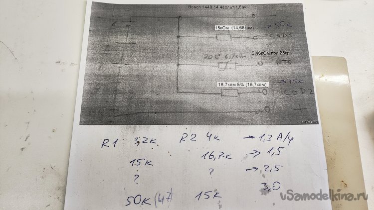 И тут совсем не ясно, зачем поднимать его сопротивление до 50кОм. Со вторым R2 неясно, что он говорит шуруповерту? Если он не меняется для 2,5А/ч, оставаясь таким же, как для 1,5 А/ч, зачем его менять для 3 А/ч? Причем его сопротивление 16,7кОм очень близко к рекомендуемому для 3,0А/ч 15кОм. Снова разбираю аккумуляторную батарею.