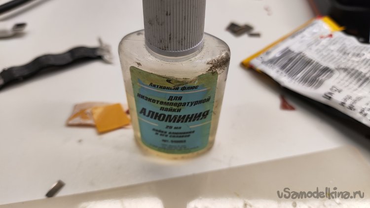 Не понравилось, очень долго лудится, выводы греются и нагревают аккумулятор. На помощь пришел активный флюс для пайки алюминия. После пайки флюс надо смывать, но я просто стирал его остатки чистой ветошью. Мне главное попробовать, что замена возможна. А микроостатки флюса навредить не должны. Но это не точно.