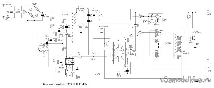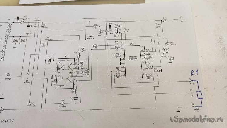 Шуруповерт батарея крутит, но как-то медленно, по сравнению с полностью заряженным аккумулятором. А еще прикол, по часовой стрелке крутит быстрее, чем против часовой. Вот это совсем непонятно. Ладно, пробую зарядить аккумуляторную батарею. И тут облом. Зарядное говорит, что аккумулятор полностью заряжен! Вот и доверяй вслепую информации на форумах. Начинаю поиск информации заново. Понятно, что аккумуляторы не виноваты, все дело в резисторах, но какой за что отвечает и какие надо ставить? Самое плохое, что кроме того форума ничего толком и нет. Меняю подход. Ищу схему зарядного устройства.