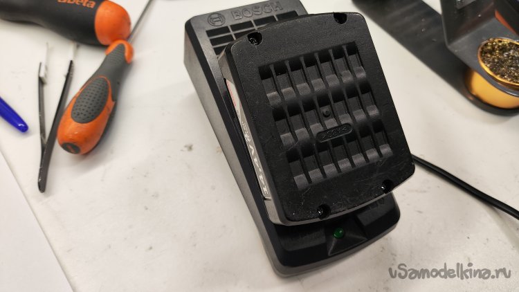 Собираю батарею. Устанавливаю на зарядку. Светодиод заморгал, зарядка пошла. Заряжался больше часа. Отлично. Осталось только проверить в работе, но думаю, все будет хорошо.