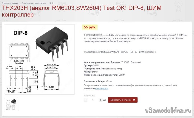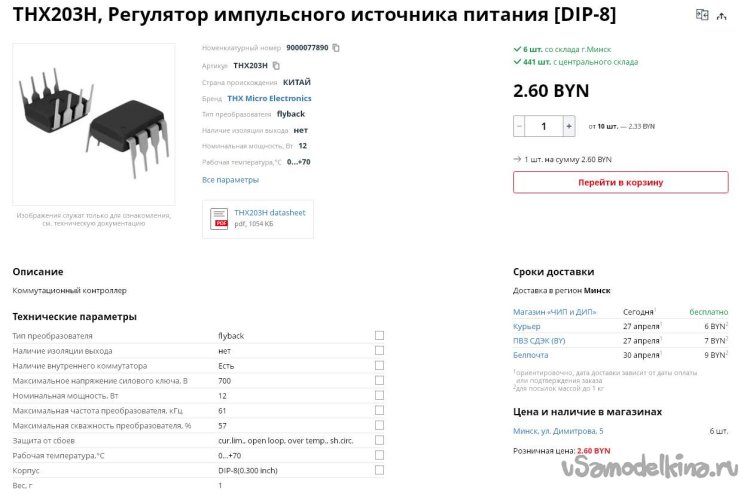 Цена на ЧипДипе 2,6 белорусских рубля. Это намного лучше, чем 12,6 рублей за "родную" микросхему.
