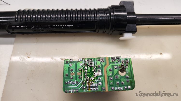 С помощью оловоотсоса выпаиваю родной ШИМ-контроллер RM6203.