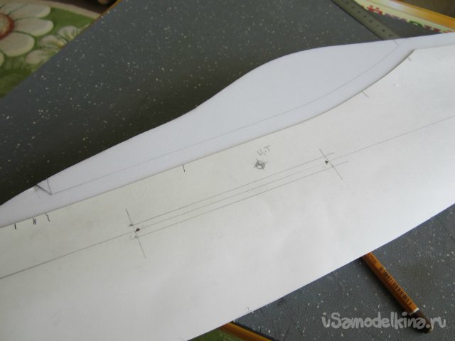 Крылья склеены. Нужно установить консоли фюзеляж. Стенке фюзеляжа размечаю осевую линию.