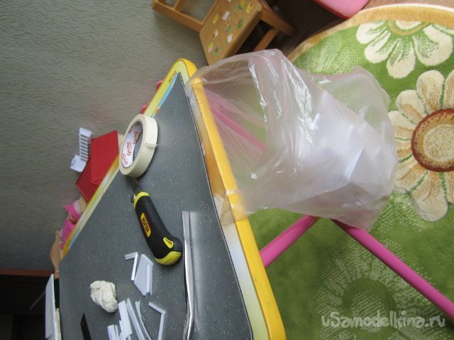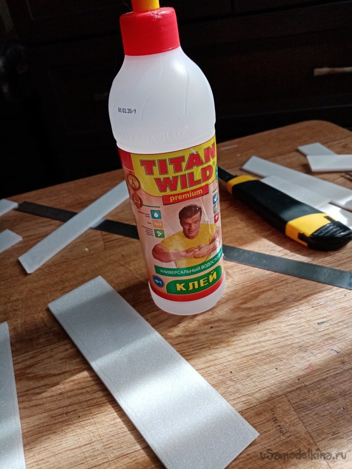 Делать буду из потолочной плитки. Применяя мой любимый клей титан, который разливаю с бутылочки с тонким носиком, для удобства пользования.
