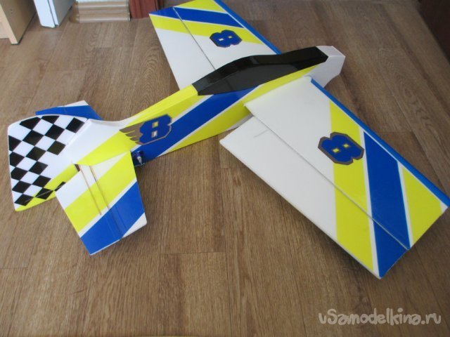 В свое время изготовил много вариантов этого самолетика. В качестве основного образца брал распространенный самолетик «mini flash». Данный аппарат является сильно переработанный проект. Превративший «крестолет-плосколет» в объемный пилотажный самолетик. Небольшого размера. Размах крыльев 100 см, длина фюзеляжа тоже 100 см. Такой пилотажный квадратик. Для более комфортной работы изготовил шаблоны из полукартона плотностью в 250 грамм.