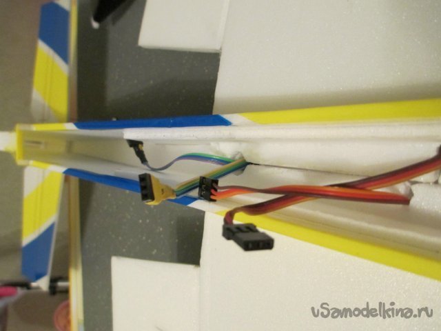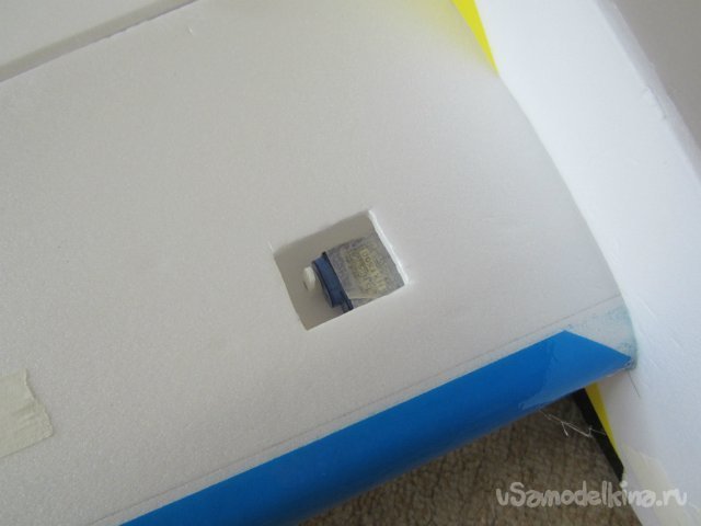 После декоративных потуг. Нужно установить элементы управления. В крыло помещаю 9 граммовые сервоприводы.