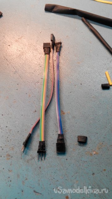 Пришлось изготовить самодельные удлинители проводов управления на сервоприводов.