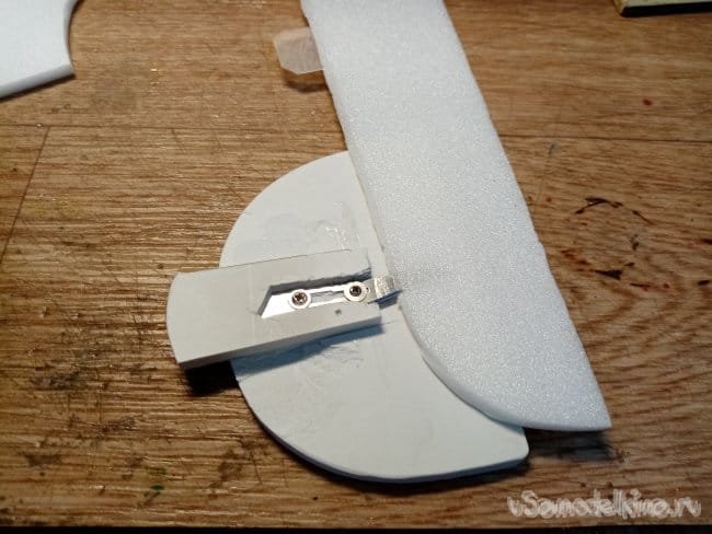 В заготовках прорезаю отверстия, для облегчения сгибания пластика и установки в элероны и крыло.