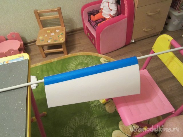На середину изгиба крыла наклеиваю скотч. Такой прием предотвращает растрескивание при интенсивном сгибании. Окончательно сгибаю заготовку крыла на алюминиевой трубке. Получается хороший, плавный перегиб и профиль крыла с округлой передней кромкой. Такой профиль не срывной.