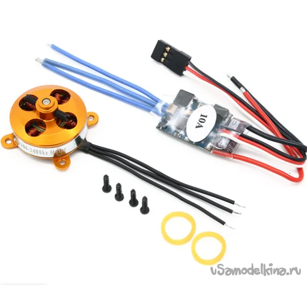 Силовой набор, который установил на самолетик. Моторчик тянет почти 400 грамм.