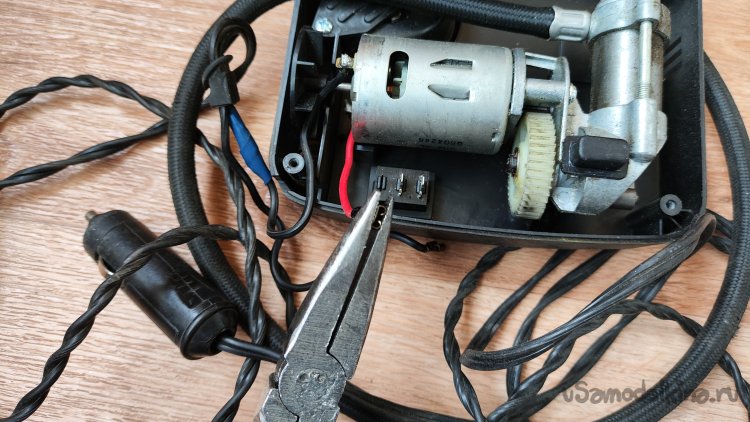В ремонте автомобильный компрессор, с жалобами - не включается. Проверил, действительно не включается, нет реакции на выключатель. Первым делом разобрал штекер, вдруг там предохранитель или обрыв. Предохранитель не предусмотрен, обрыва нет.