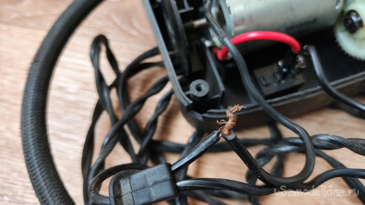Заодно решил проверить место на проводе, перемотанное изолентой. И не зря. Провод просто скручен и контакт может пропасть в любое время.
