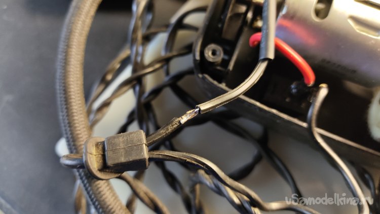 Облудил и спаял провода, не забыв надеть на провод кусочек термоусадки.
