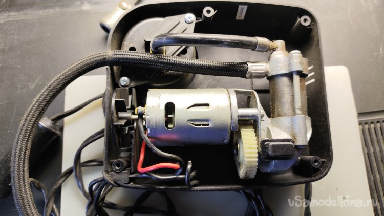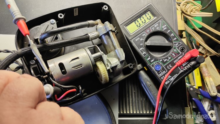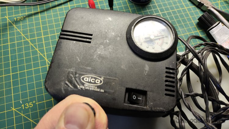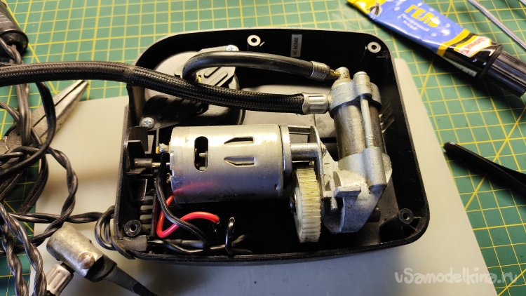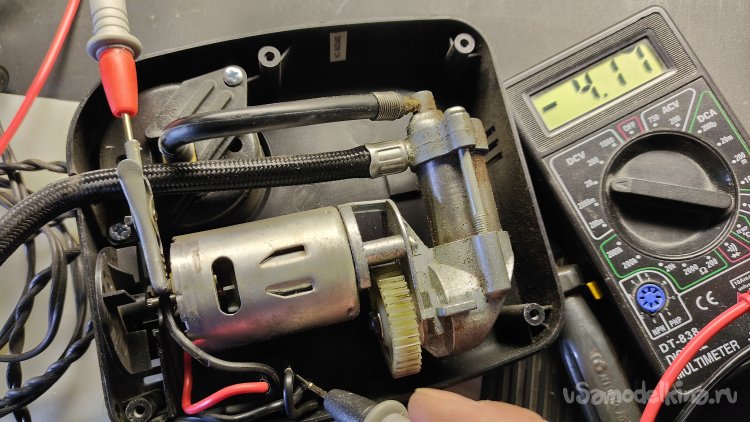 Пощелкал несколько раз выключателем, ситуация непонятная. Двигатель может включиться, может не включиться. Может проблема в двигателе? Разбираю компрессор. Снижаю напряжение на блоке питания до 4В, чтобы при включении двигателя не ловить компрессор по столу. Пробую несколько раз включить, добиваясь состояния, когда не работает.