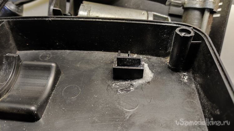 Заметил на корпусе (дне) обломанный кусок пластика.
