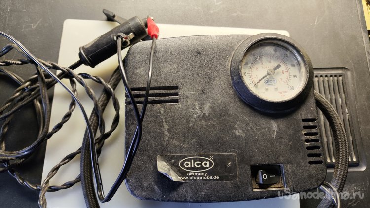 При сборке выяснилось, что со второй стороны насоса тоже стоит демпфер и тоже обломан корпус. Вот только части корпуса нет. Вклеил демпфер в корпус на клей «Момент». Собрал компрессор. Выставляю на блоке питания 12,5 Вольт.