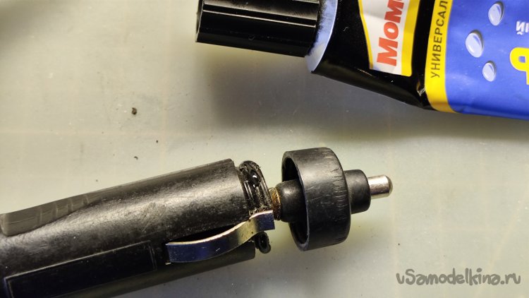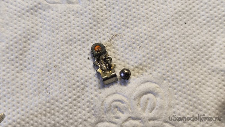 На пружинку нанес каплю вазелина, чтобы приклеить шарик. Это надо для сборки.