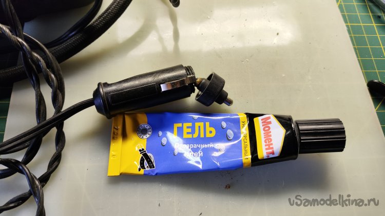 Чтобы штекер случайно не разобрался в прикуривателе, решил склеить его на клей.