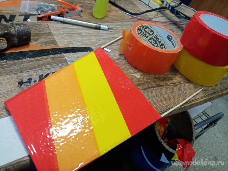 После высыхания деталей, начинаю наводить красоту при помощи разноцветного упаковочного скотча.