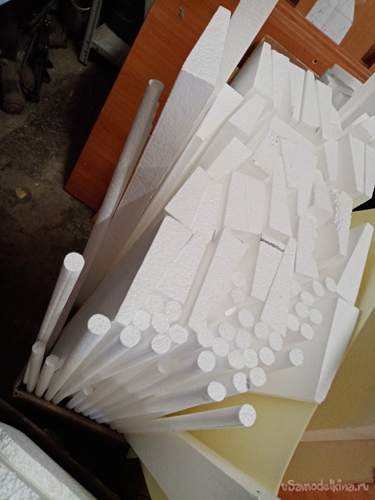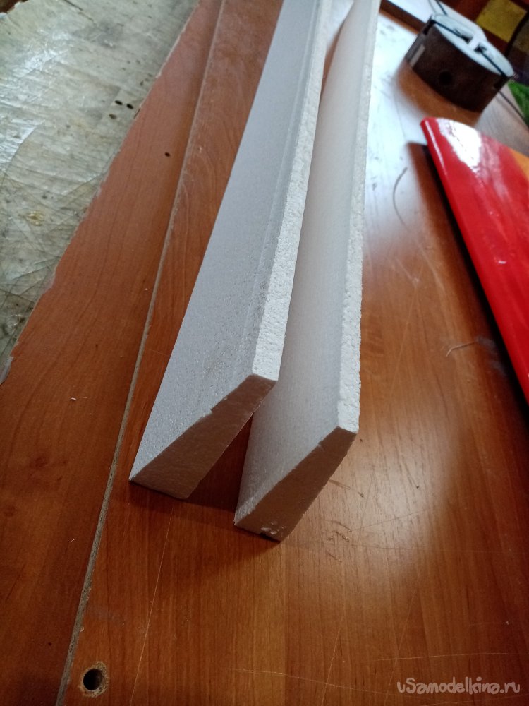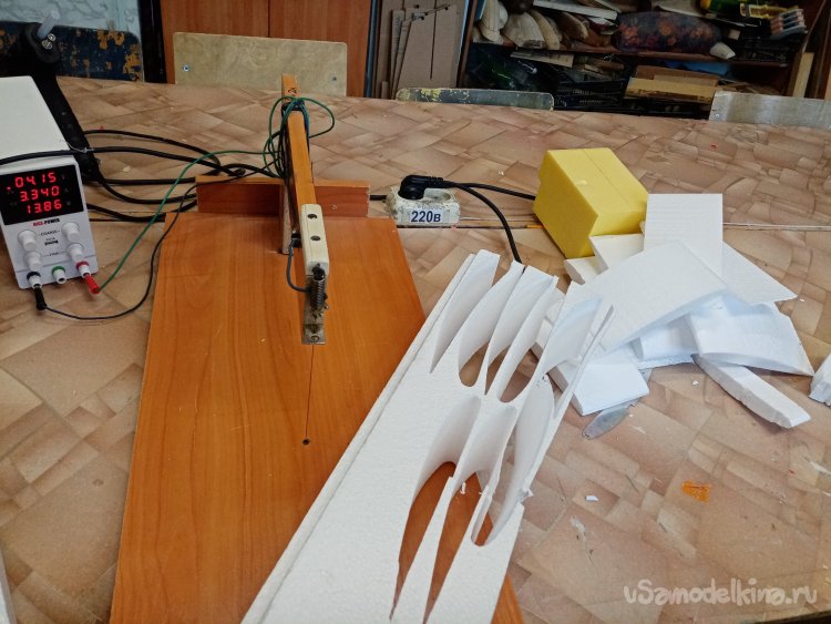 Прогуливаясь однажды по нашей авиамодельной лаборатории, мне на глаза попалась довольно большая куча обрезков. Эти остатки образовались от резки крыльев очередного проекта. Все это великолепие собрано в кучу и предназначалось в мусорницу. Заинтересовавшись качеством резки и структурой пенопласта. Произвел некоторые тесты, на прочность, упругость и чистоту поверхности после реза раскаленной нихромовой проволокой. Мои исследования дали положительные результаты. Куча так называемого «мусора» была тщательно отсортирована и сложена в коробку.