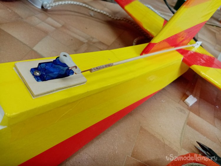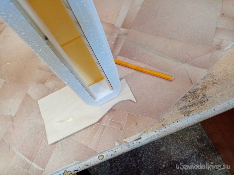 Закрепляю хвостовое оперение на задней части фюзеляжа при помощи термоклея. Закрываю часть хвостика сверху. На эту площадку нужно установить сервопривод управления руля высоты.16 171 18
