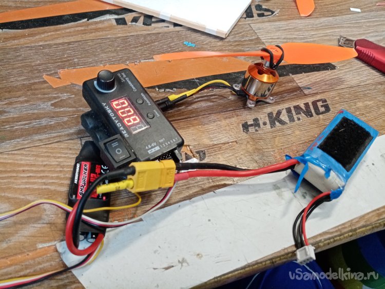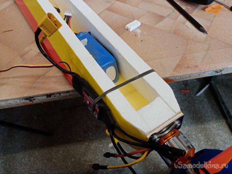 Проверяю и устанавливаю по местам мотор, регулятор и аккумулятор.