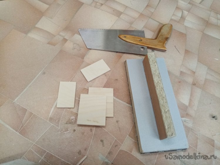 Продолжаю процесс. Нужно изготовить усиления для шпажек крепления крыла на фюзеляже. По размеру выпиливаю их фанеры прямоугольники.