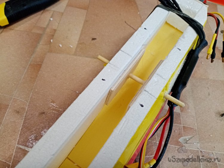 Закрепляю термопистолетом на внутренней поверхности бортов фюзеляжа.