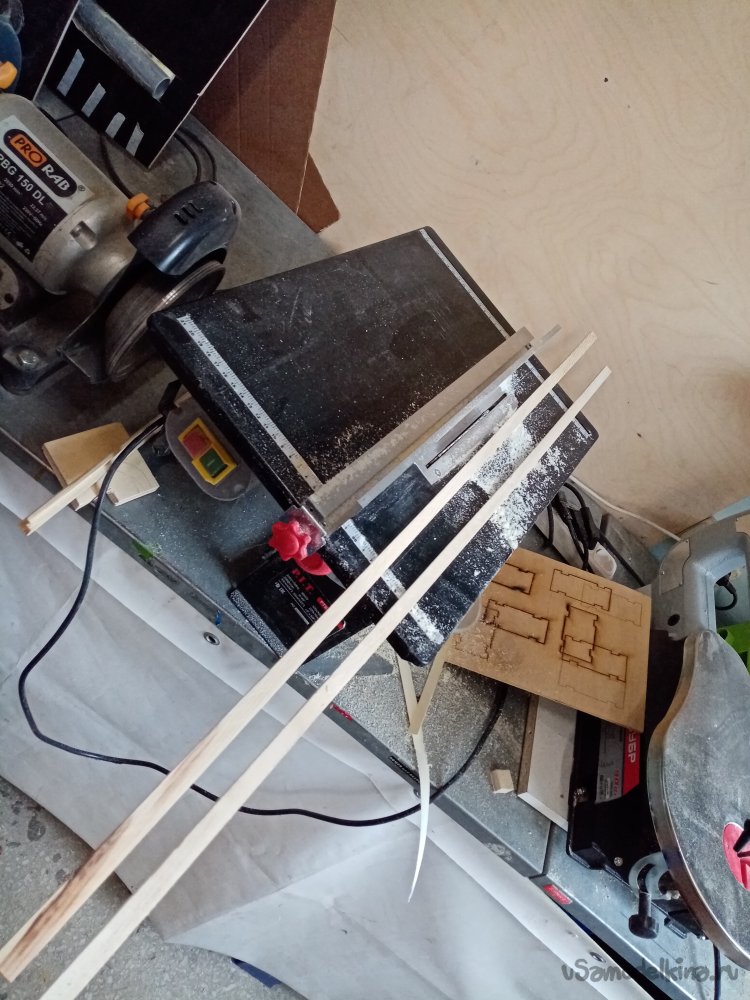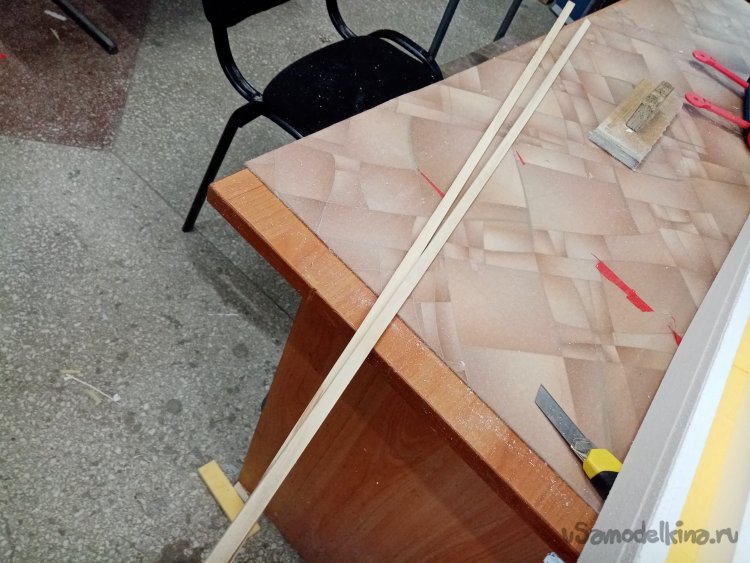 Следующий этап изготовление элеронов. Изначально не стал устанавливать на крыло, поскольку невозможно вставить с ними в фюзеляж. Напилил тонких реек размером 5х3мм.