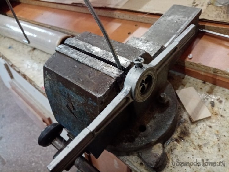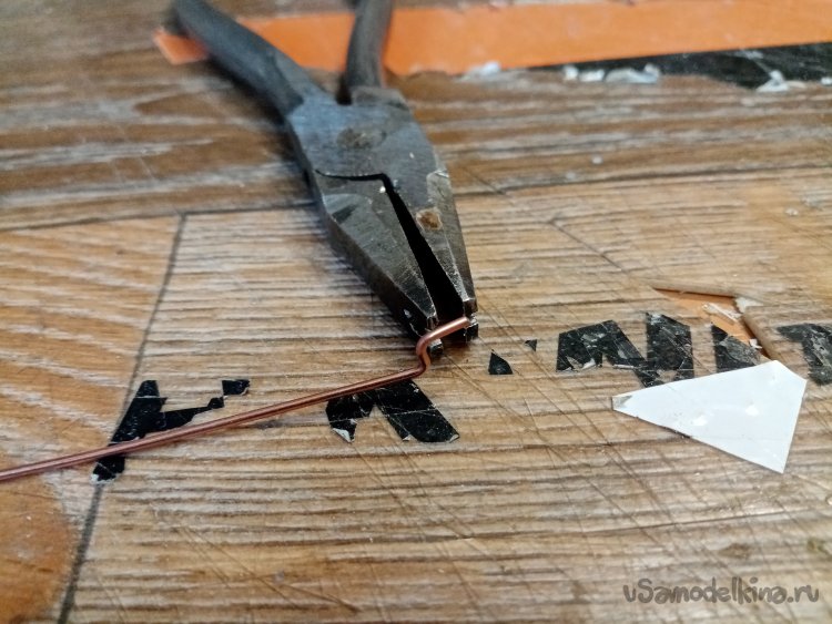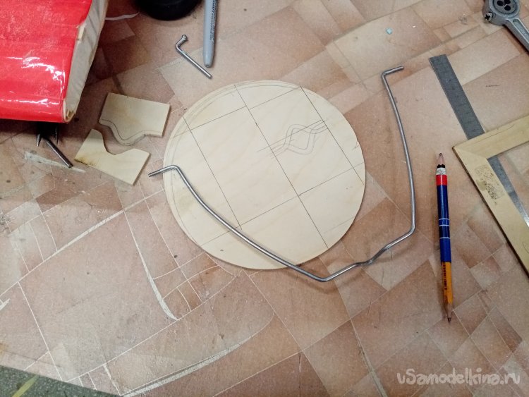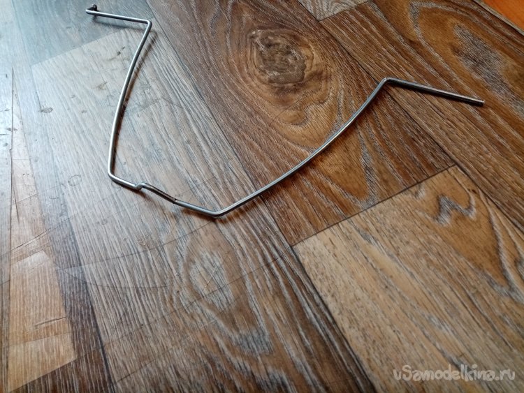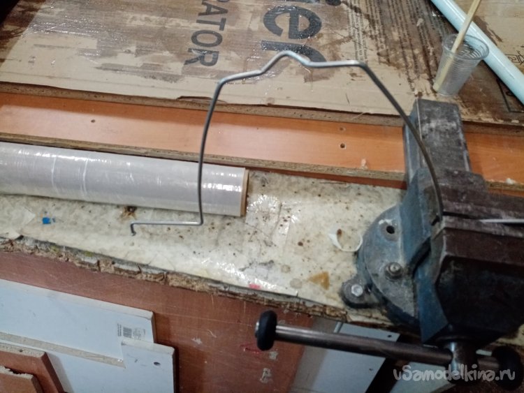 Плавно перехожу к изготовлению шасси. Для стоек использую дужку от пластикового ведра. В тисках изгибаю под нужными углами. Заготовка на стойки шасси готова.