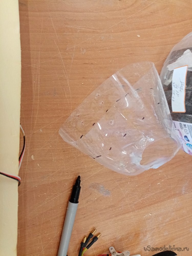Капот осаждаю из бутылки на болванке. Отрезаю по размеру, размечаю отверстия крепления из болтиков.