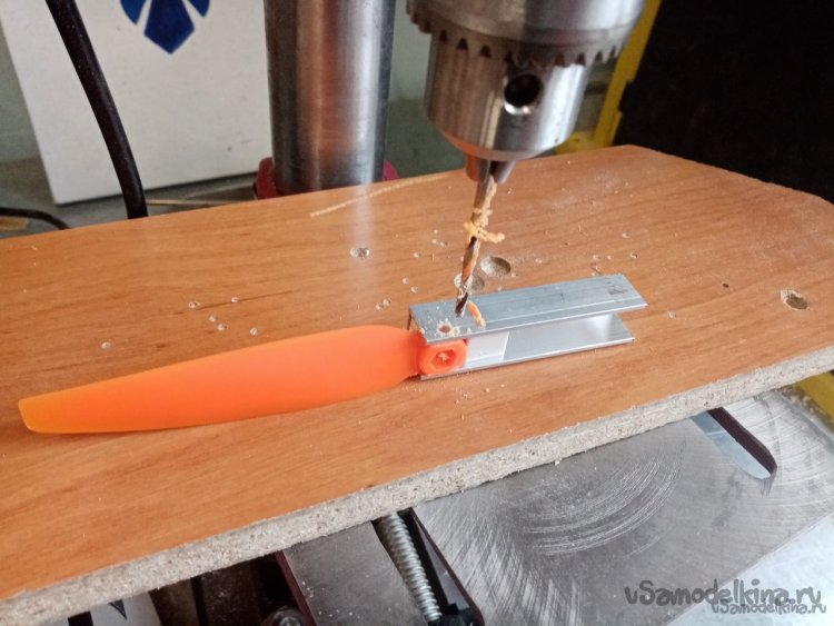 Винт изготовил из сломанных. Остались некоторые не поврежденные лопасти. Соединяю вместе при помощи алюминиевого профиля. Складывающийся винт готов. Хорошо работает при грубых посадках. Лопасти не повреждаются.