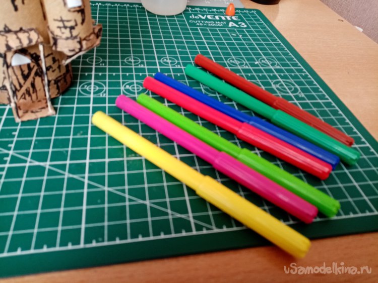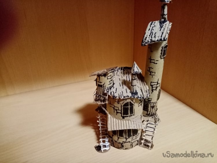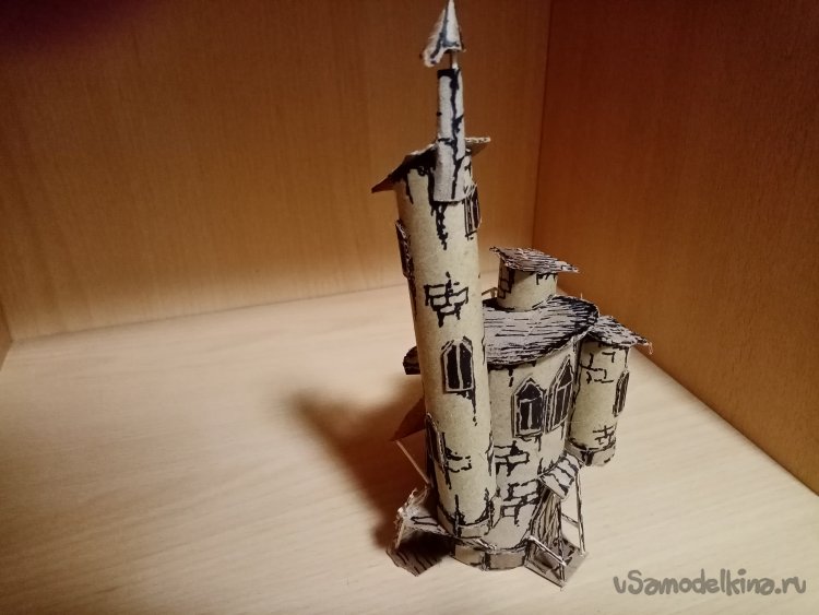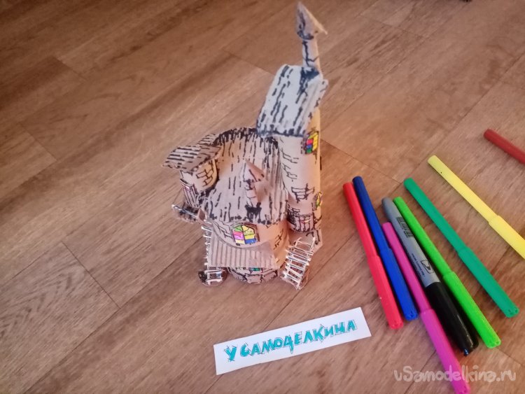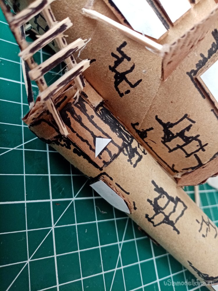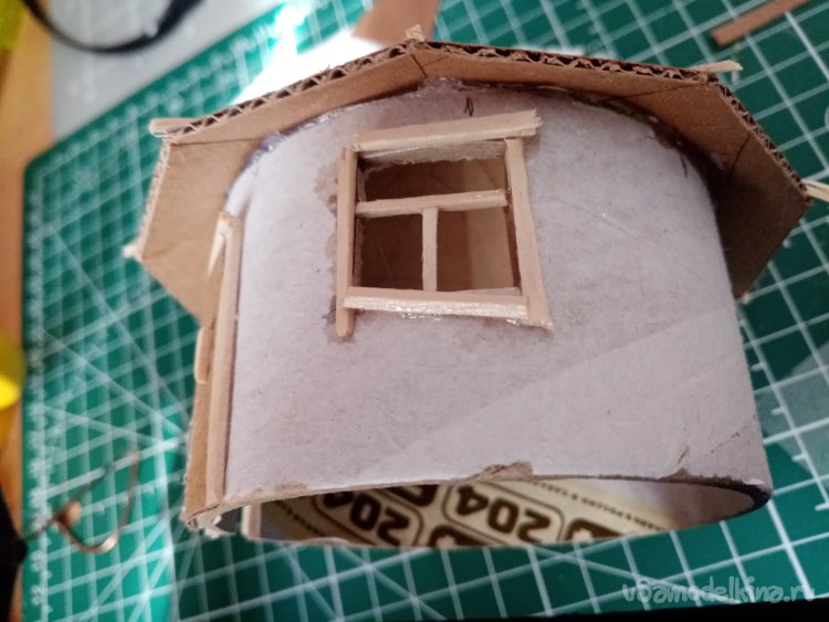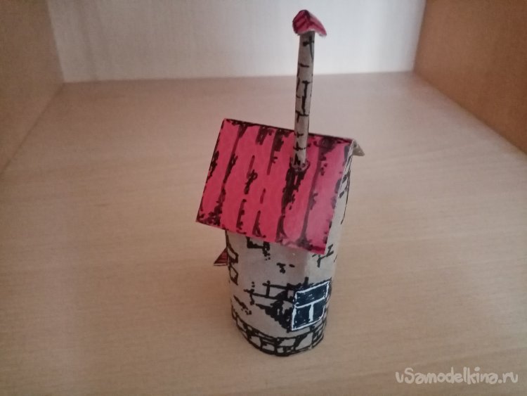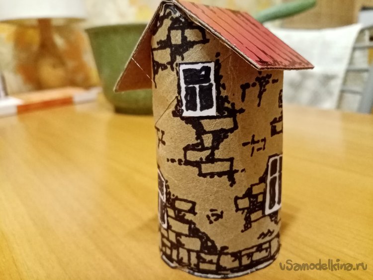 Приклеиваю окна из белой бумаги. Немного раскрашиваю черным фломастером и готово.