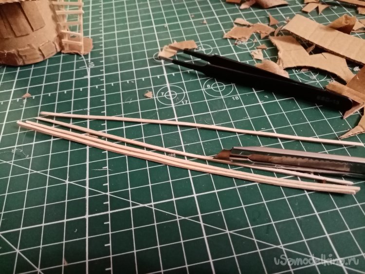 Расщепляю палочки от мороженного, на различные детали пойдут.