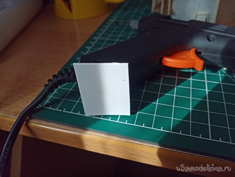 Немного модернизировал клеевой пистолет. Приклеил на ручку площадку из пластика на циакрине. Инструмент стал более устойчивым.
