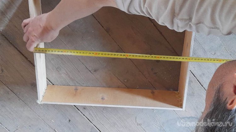 Прикладываю планки дна ящика по месту к каркасу ящика.
