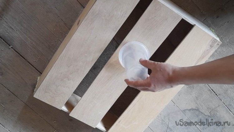 Желательно, но не обязательно, ширина планок дна ящика была бы больше дна стакана.