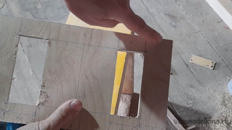 Прикладываю ладонь своей руки к отрезкам фанеры и визуально определяю какой отрезок подойдет по ширине.