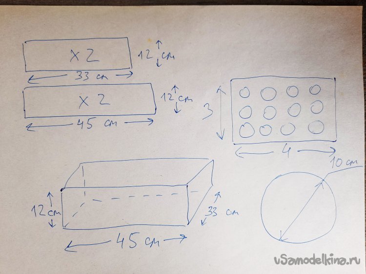 Делаю чертеж деталей ящика от руки по быстрому.