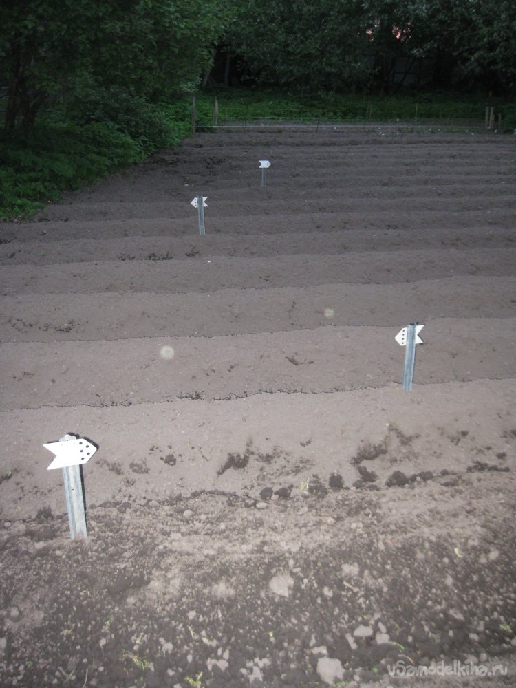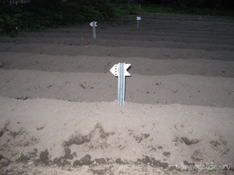 Как раз для этих целей и удобны такие колышки, поскольку они не только показывают, какой сорт посажен в данном месте, но и обозначают точку, где начинается его посадка, а также указывают направление его посадки в гряде.