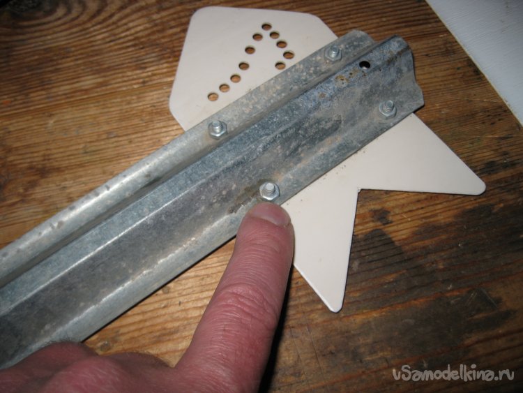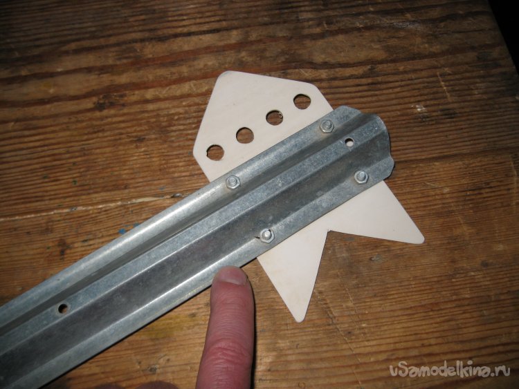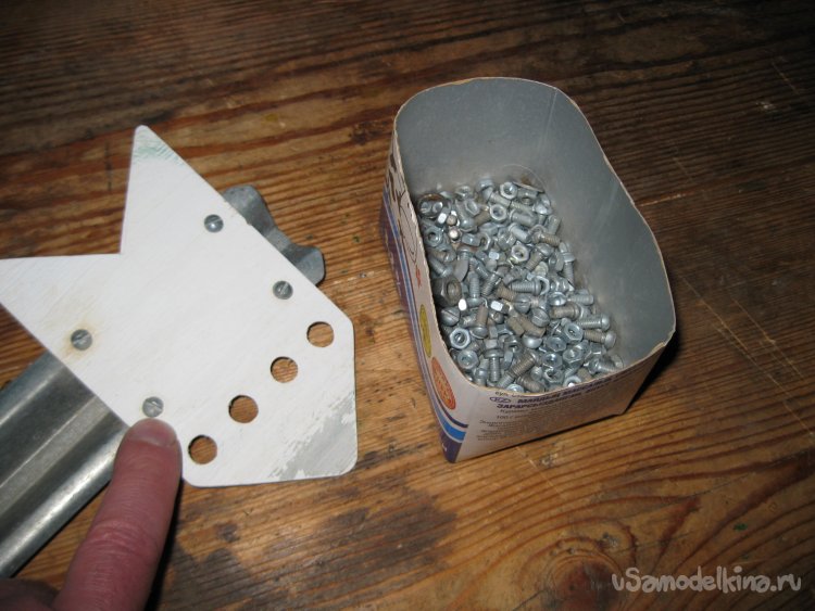 Кстати, использовал я для этого болтики и гайки М4, которые являлись крепежом в огуречном парнике, профиль от которого я использовал.