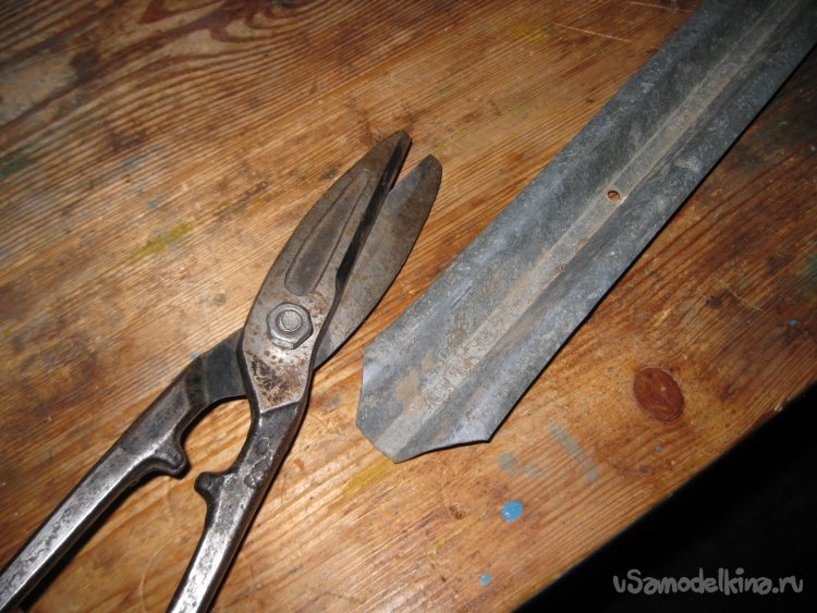 Таким образом, у меня получились основания длиной по 60 см. При этом оказалось, что оцинкованный профиль прекрасно режется вот такими обычными ножницами по металлу.