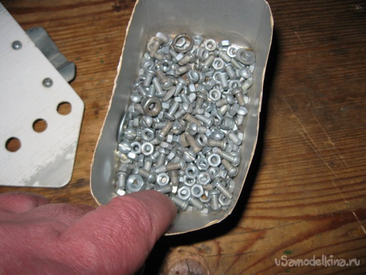 Производитель этого парника в свое время не поскупился и положил крепежа раза в три больше, чем было нужно для сборки парника. Поэтому эти болтики и гайки я до сих пор использую для разных нужд.