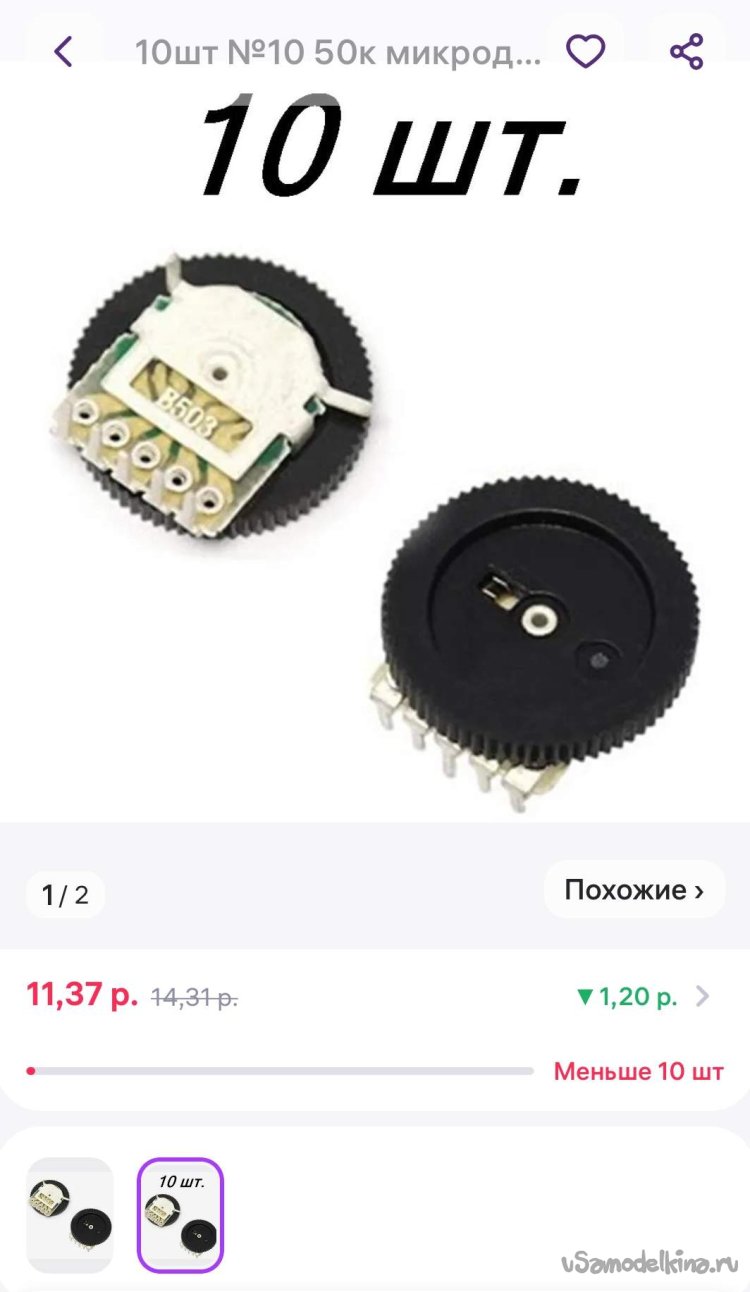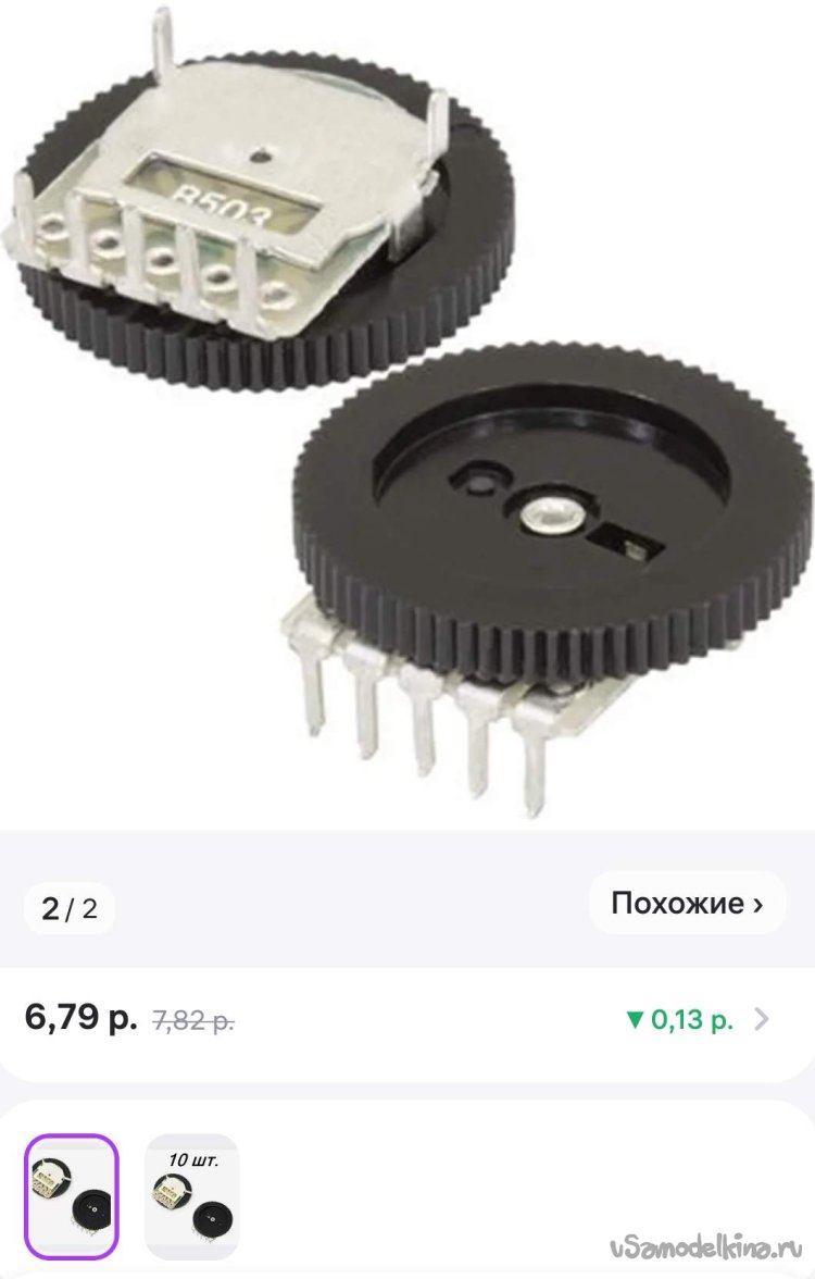 А что нам могут предложить на маркетплейсах? Первый же запрос дает точно такой же переменный резистор по цене 6,79 р. за штуку.
