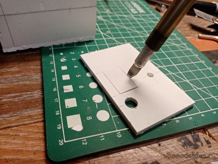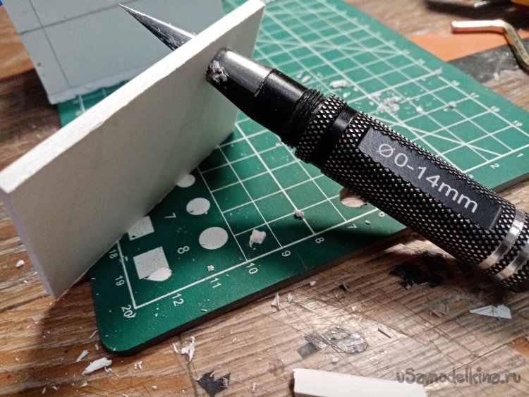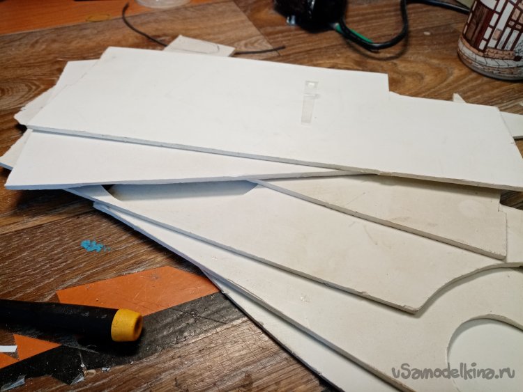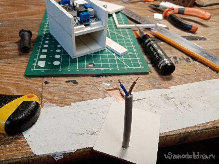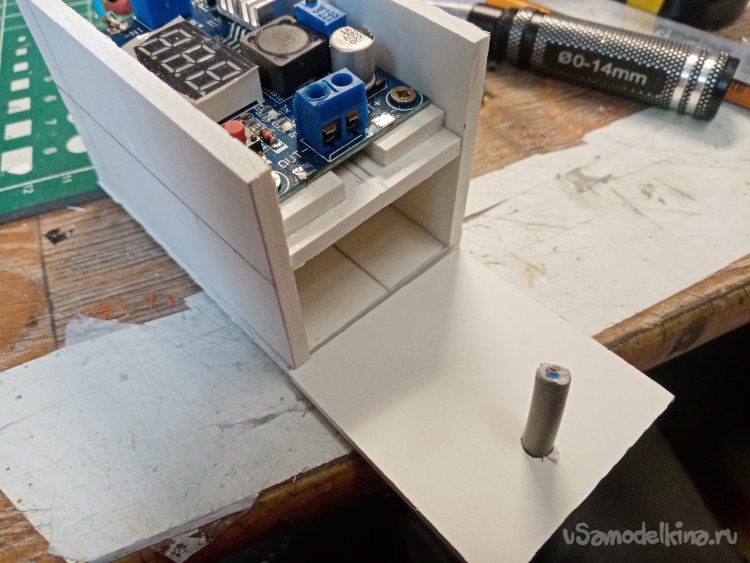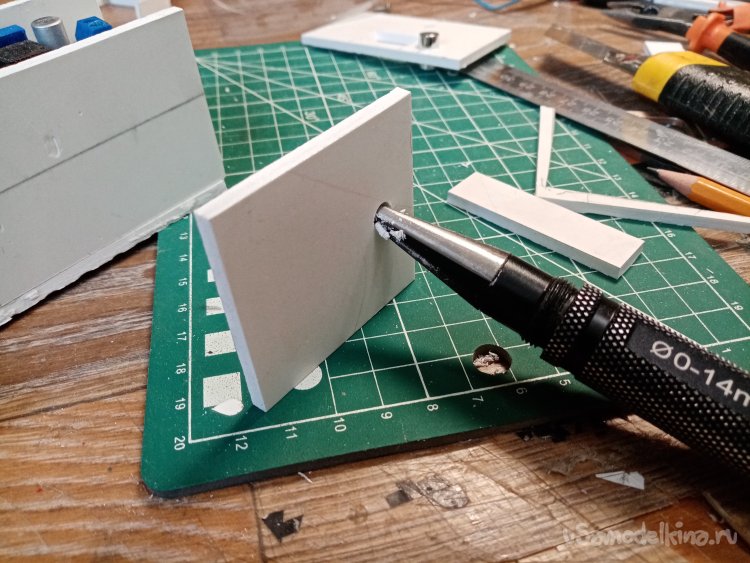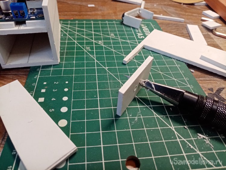Корпус буду делать из своего любимого рекламного пластика. Хорошо режется пилится, строгается, склеивается циакрином. Собираю по углам небольшие обрезки белого цвета.
