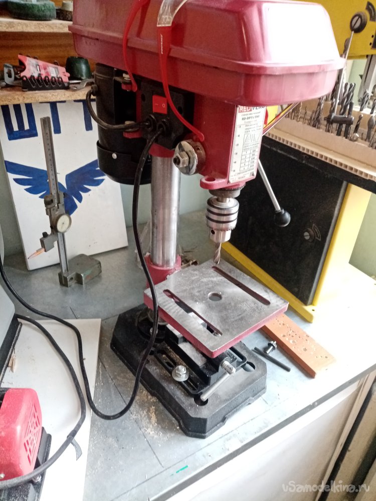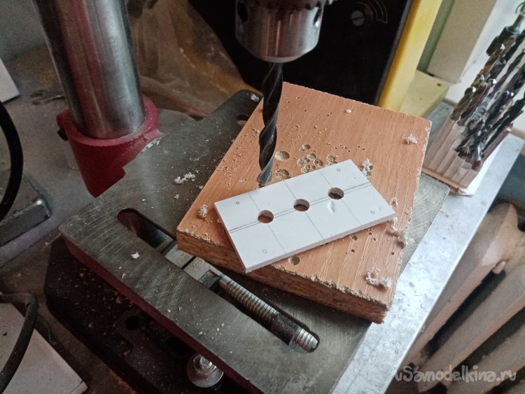 Первое отверстие бодро пробуравливаю новым приспособлением купленным на Али. Под кнопочку.
