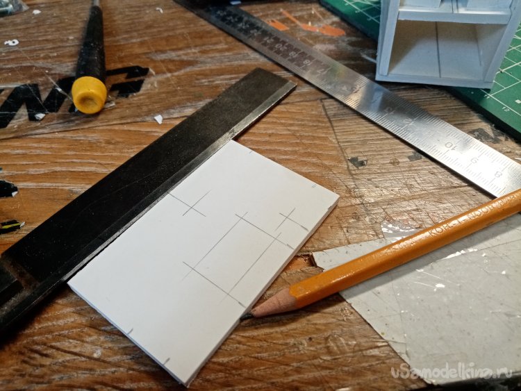 Общие размеры определены. Вычерчиваю заготовки на пластике при помощи линеек и угольника.