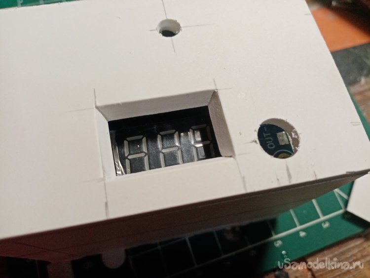 Затем отверстие под регулировку. И резка под конус, окошечка для дисплея.