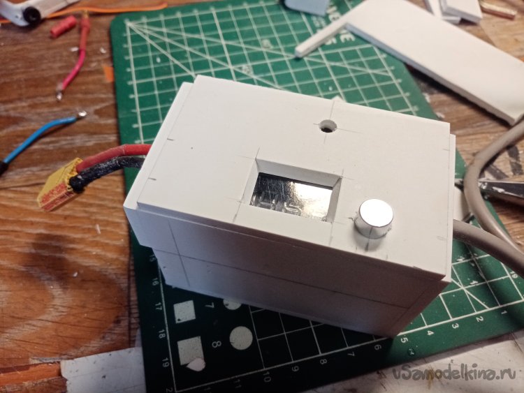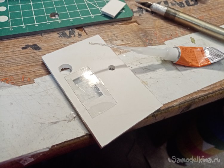 Примеряю крышку на место. Под окошечко вырезаю защиту из прозрачного пластика и приклеиваю с обратной стороны на циакрин.
